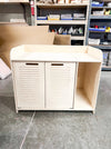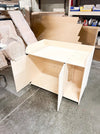 -Your product will arrive pre-sanded and untreated. It can easily be stained or painted once assembled. All products are wiped down prior to packaging, however, some wood dust may be present upon opening and can easily be cleaned off using a hair dryer or air compressor.