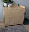 -Your product will arrive pre-sanded and untreated. It can easily be stained or painted once assembled. All products are wiped down prior to packaging, however, some wood dust may be present upon opening and can easily be cleaned off using a hair dryer or air compressor.